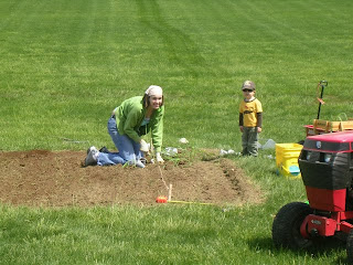 We had a beautiful day on Sunday, so we all spent the day outside working on the veggie and herb gardens. I got most of the plants planted in the veggie garden, while Shaun worked on edging the herb garden (I'll plant at another time).